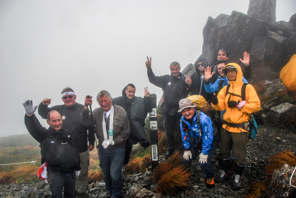 Leider hat sich die Wettervorhersage um 1 Tag verspätet, so dass der Aufstieg immer mehr zu einem nassen Erlebnis wurde. Ca. 1 km vor dem Gipfel, auf einer Höhe von 1630 m gaben wir den Kampf mit dem Wetter auf und es ging wieder zurück. Nach Ende der Tour übergaben wir den Ohasama-Bergsteigern eine Erinnerungsfahne des Alpenvereins Berndorf. In einer Hütte wurden wir noch bewirtet, bei der Rückfahrt besichtigten wir noch den Berndorf-Platz, den Haychine-Damm und die 2015 gesetzten Veltliner-Weinstöcke. |